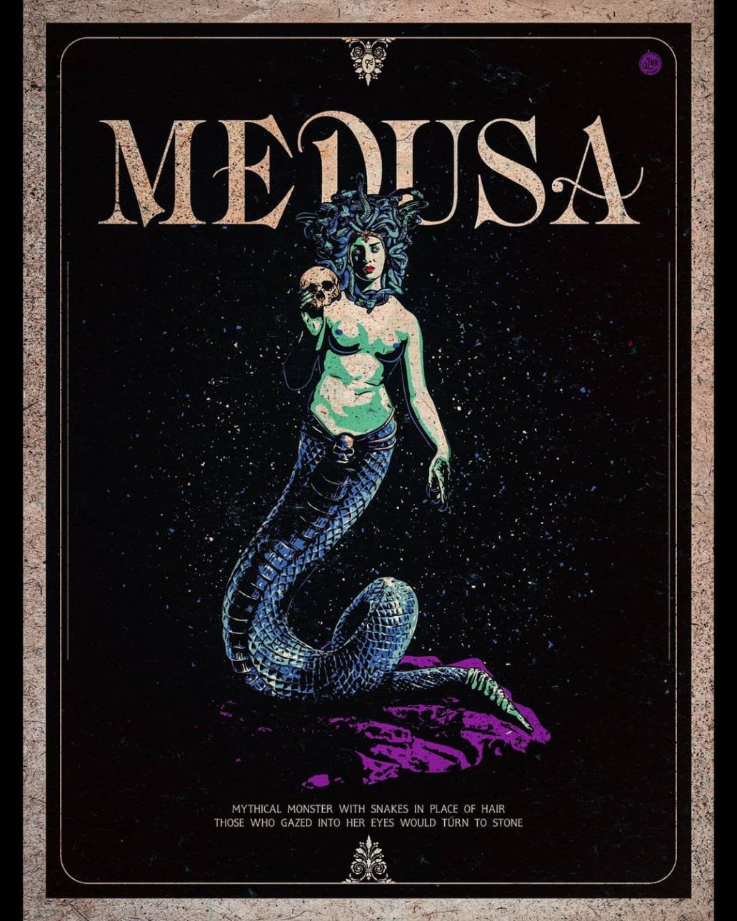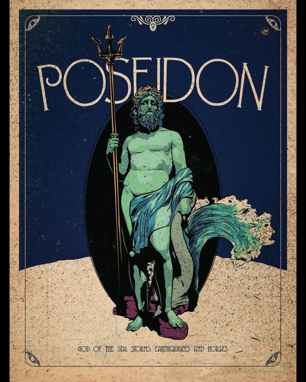The featured artist of Forum Obscura issue 01, Jeorge Milonas is a Greek artist who’s had the pleasure of making graphics for his favorite band TOOL. From an interview Jeorge had with another publication I was able to find out that he started his art in 2002 on an experimental basis but in 2007 he thinks it really took off as he began work professionally. A large amount of the most recent art on Jeorge’s Instagram (jnk2007) features comic style or even tarot card-Esque depictions of mythological beasts and Gods/Goddesses in a display of muted colors and exceptionally simple yet lively detail work, one of which you can see on the cover of Issue 1 that we released earlier in the year.